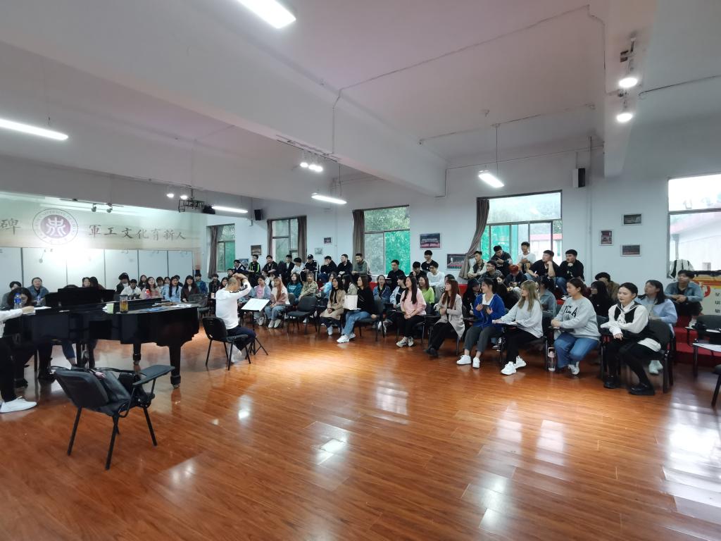 甘霖老师实地观看了我院合唱团排演《永远跟党走》合唱音乐会部分作品,并进行了现场指导。其中对《让世界都赞美你》、《嘎哦丽泰》、《贝加尔湖畔》、《感恩的心》等多首曲子进行专业指导,并提出了宝贵建议。他对每个段落处理要求仔细,对音乐语汇、逻辑重音等音乐要素严格要求。