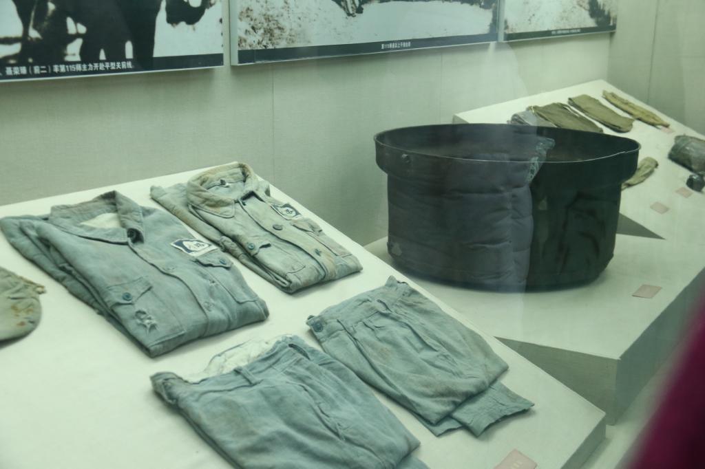在平型关大捷纪念馆,踏着标志八路军第115师番号的115级台阶进入纪念馆,映入眼帘的是欢呼胜利的场面。阅读八路军军歌,感受到的是激昂的士气;伫立在敌人与我军厮杀的图片前,令人激情澎湃;简单的步枪,反映的是当时八路军装备的落后;衣服上的洞有千百个,感受到的是战争的残酷无情;平型关大捷,是中国军队第一次抗击日本胜利,打败了日本三个月战领中国的狂妄,打败了日本"不可战胜的神话。任新和老师激动的说:“在敌我武器装备悬殊的情况下,如何打赢这场仗?依靠的就是八路军战士不畏强敌,敢于牺牲,敢于亮剑,保家卫国的决心。他们留给我们的平型关精神,永远是我们的宝贵财富。”