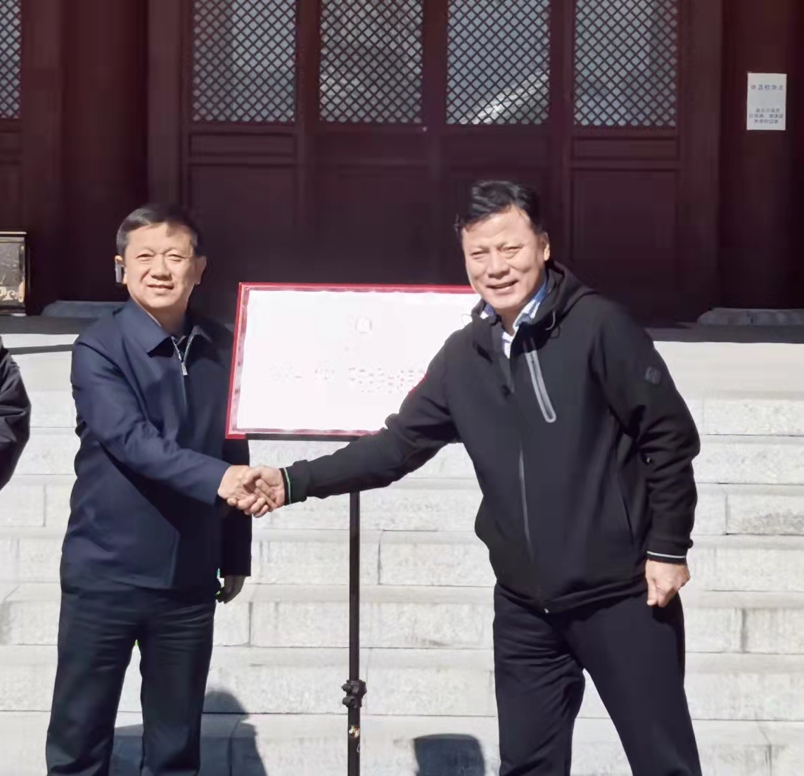 党委书记栗秀萍、院长王燕平和繁峙县委书记崔峥岭、副县长兼教育局局长高存国共同为基地揭牌。
