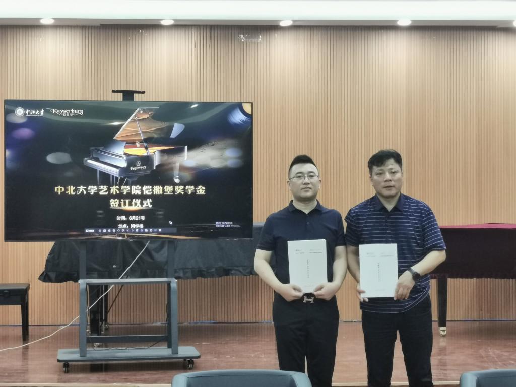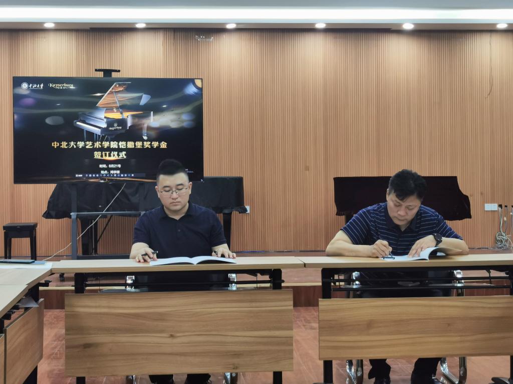 与广州珠江恺撒堡钢琴有限公司签订“恺撒堡”奖学金合作协议,签约仪式在音乐系楼二层东厅举行,院领导、音乐系专业教师参加了签约仪式。