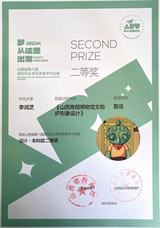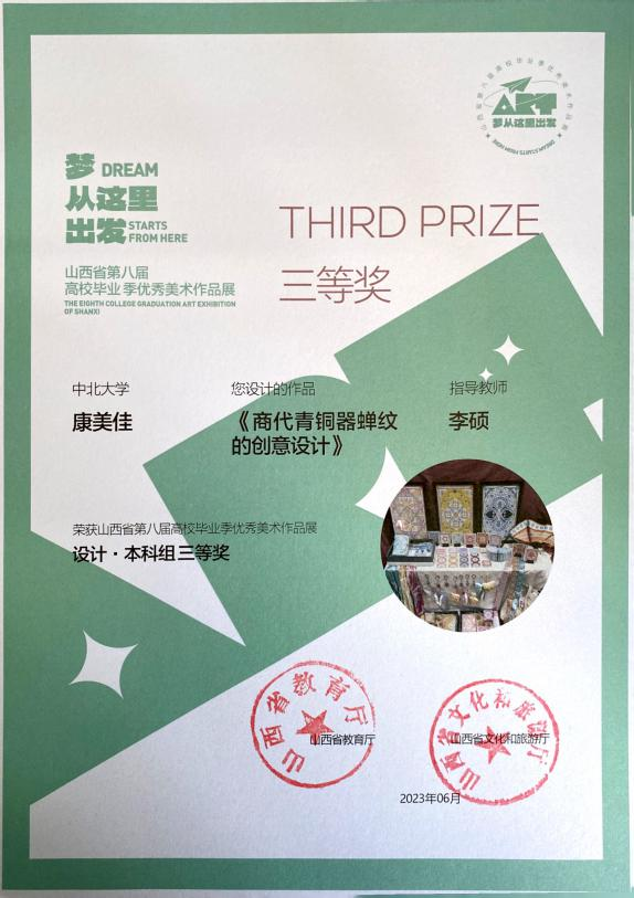 高度重视本届大赛,指导教师与同学们一起打磨作品、精心准备,为取得优异成绩打下了扎实的基础。本届美展由山西省教育厅、山西省文化和旅游厅主办,学院设计系毕业生积极参展,其中作品涵盖文化创意设计、数字艺术设计等不同的专业领域。