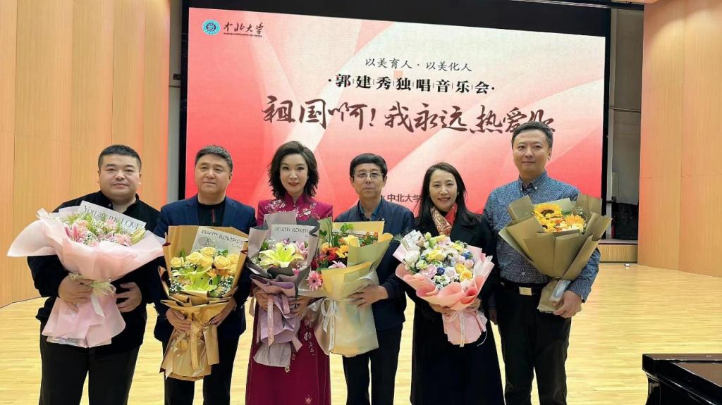 一首《听一会音乐》[英]拉开了音乐会的序幕,随后郭建秀老师分别演唱了《党啊,亲爱的妈妈》《乡愁》《天之大》《师恩如歌》《佳节思亲》《钗头凤·红酥手》《献词[德]》《残香[韩]》《祖国啊,我永远热爱你》等不同风格的声乐作品。