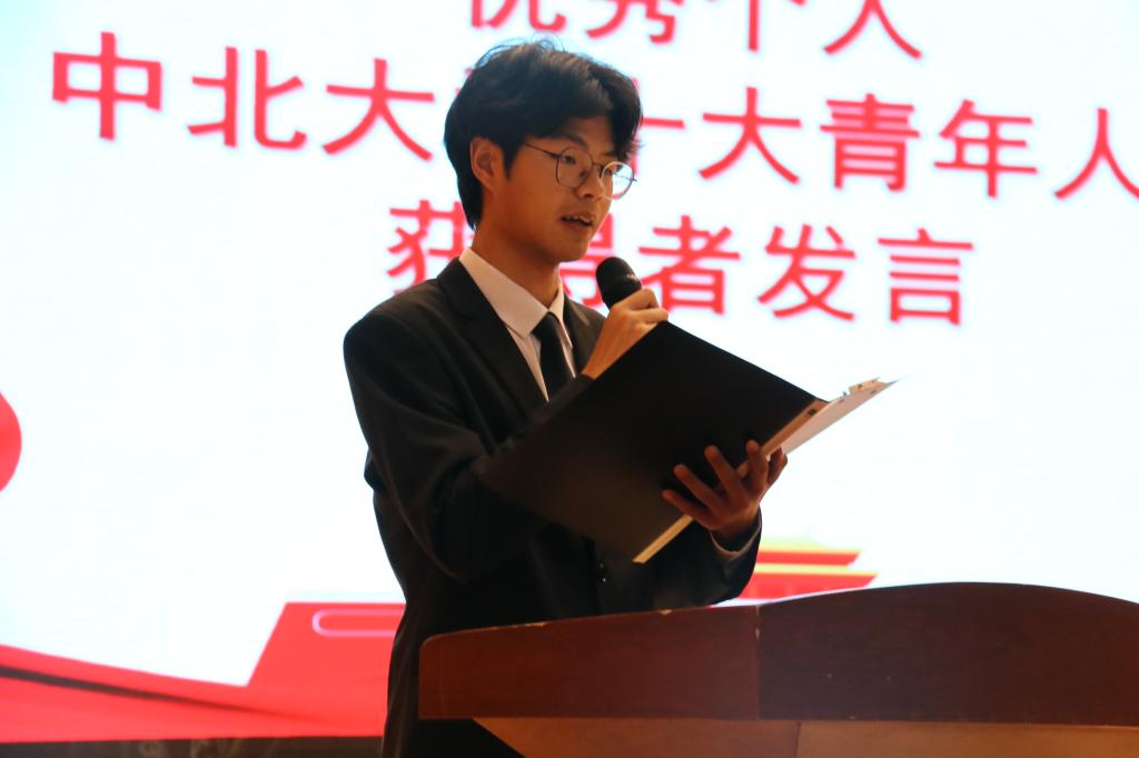 优秀学生代表范佳欣发表感言。她对过去一年的学习、工作、实践等方面进行总结,分享了个人的感悟与提升,并表示将牢记团员青年的使命与责任,以更加饱满的热情和更加坚定的信念投入到共青团的工作和学习中去。五四红旗团支部代表王天硕发言,他号召同学们以更加饱满的热情、更加务实的作风,继续发扬五四精神,推动团支部工作再上新台阶。