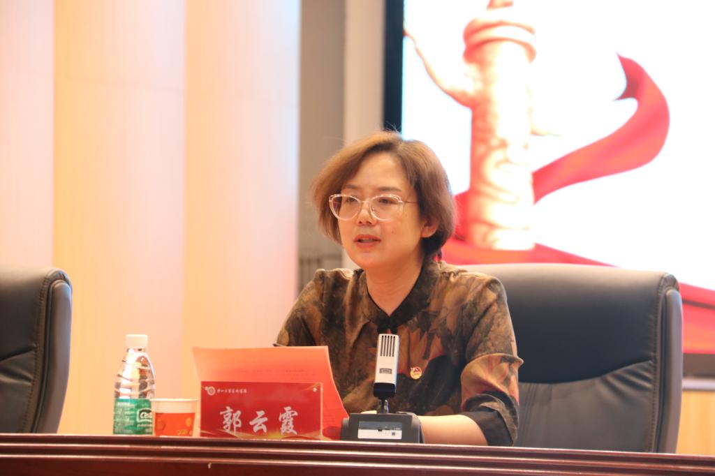 党委书记郭云霞作闭幕讲话。她寄语广大团员青年,一要坚定理想信念,树立正确的人生观、价值观和世界观;二要勤奋学习,做强国复兴的担当者;三要以艺德行天下,做德艺双馨的艺术人;才四要投身实践,在社会实践的熔炉中淬炼优秀品德。