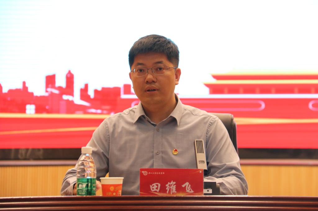 团委于2024年5月14日上午9时在科艺苑召开2023年度纪念五四运动105周年暨“五四”表彰大会。学院党委书记郭云霞、院长王燕平、副书记田维飞、副院长李仁伟、副院长杨博华、全体辅导员、获奖学生及400余名青年学生代表参加大会。会议由学院党委副书记田维飞主持。