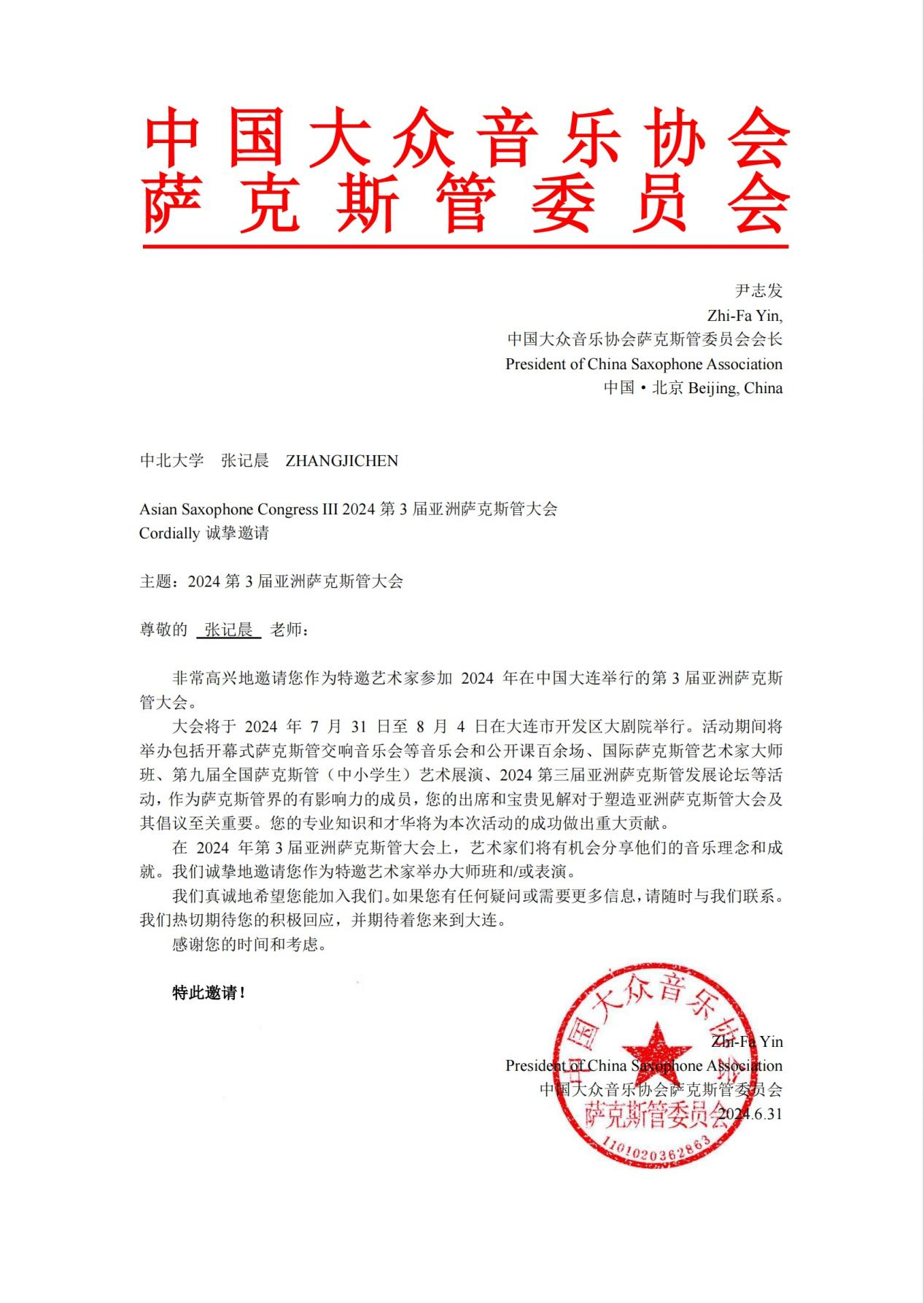 2024年7月31日至8月4日,第三届亚洲萨克斯大会在辽宁大连开发区大剧院成功举办,吸引了来自全球各地的萨克斯艺术家和学习者。张记晨博士作为特邀艺术家,不仅参与了音乐会演出,还担任展演比赛的评委。他的演奏获得了与会艺术家和观众的一致好评,充分展现了偷拍av