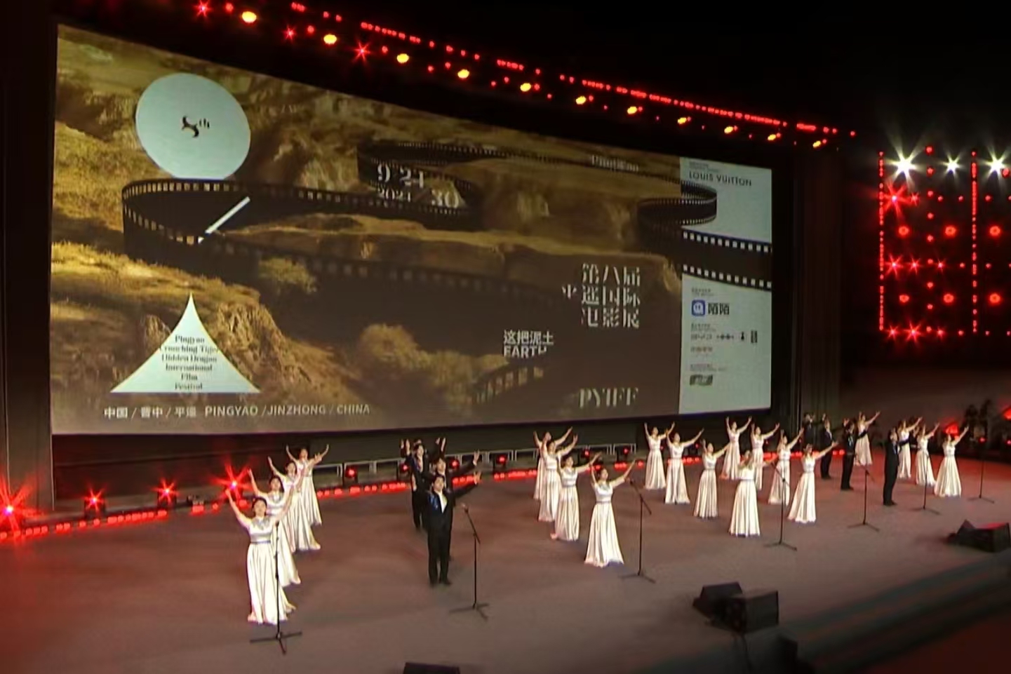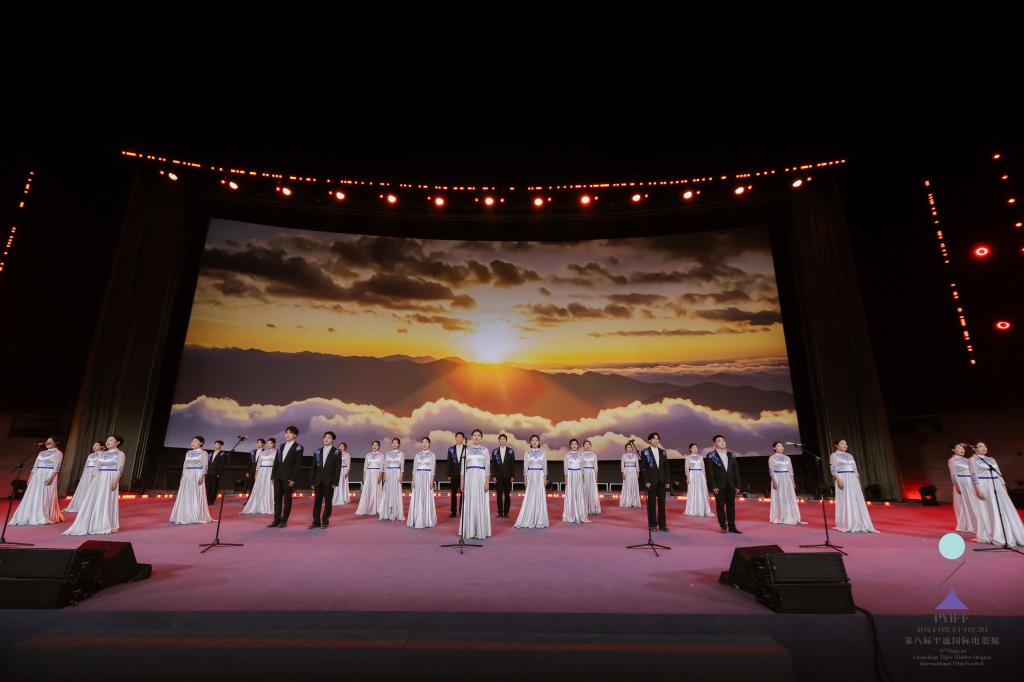 合唱团作为高校合唱团受邀参加此次国际盛宴,以作品《我爱你中国》振奋全场,点亮第八届平遥国际电影展的开幕;与电影展创始人、著名导演贾樟柯共同演绎《阳光俱乐部》主题曲《Don’t Worry Be Happy》。舞台上,合唱队员们用青春的笑容、热情的歌声与大咖共舞,与台下演员们激情互动、燃爆全场,将盛典气氛推向了高潮。同学们的精彩表现展示出了扎实的专业功底和丰富的舞台表演经验,受到了导演组的一致好评。