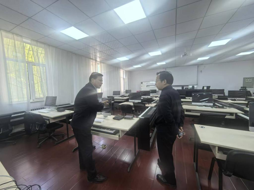 多功能音乐排练厅、教学实践音乐厅、音乐制作与试听实验室、数码钢琴制作室、琴房等办学条件。王燕平院长就学院基本情况、人才培养、学科建设、社会服务、建院以来的重大成果以及近年来学院所取得的成绩及如何助力学校冲击“双一流”的举措进行了汇报。