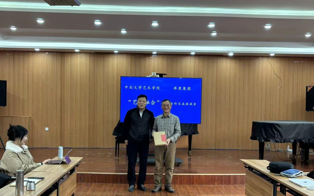 与苹果集团“艺工融合”校企合作交流座谈会。会议由院长王燕平主持,苹果集团一行5人、学院相关教师与学生代表参加了此次会议。