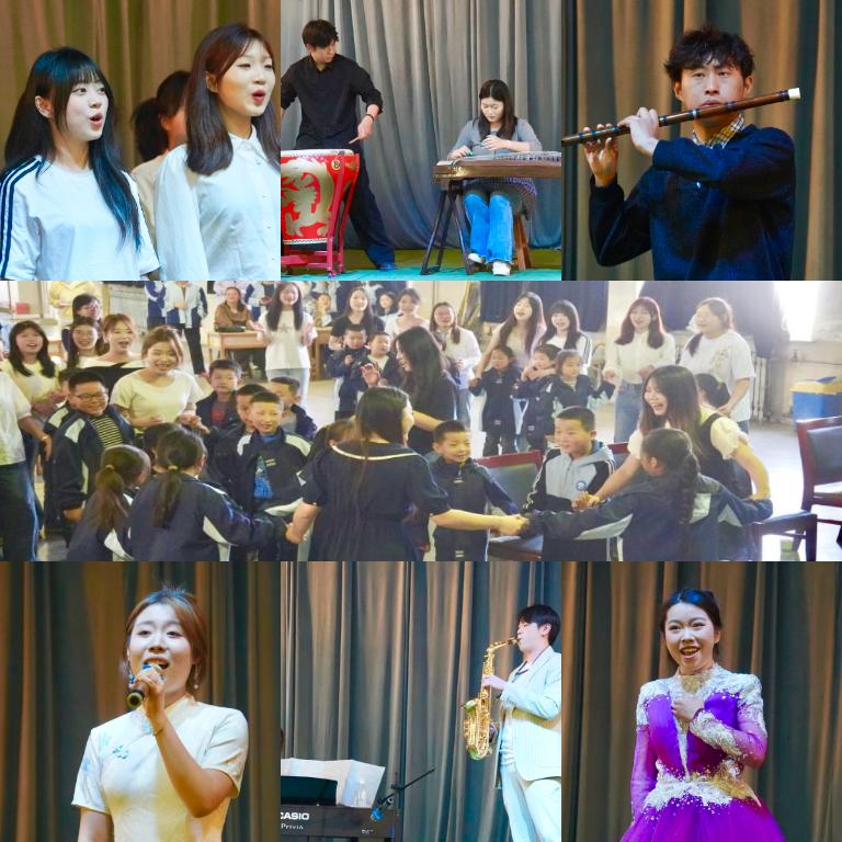 演出尾声,全体参演师生主动走进三岔小学学生中间,与孩子们并肩牵手、同台合唱,大手紧紧牵起小手,歌声交融、心意相通,将 “大手拉小手、美育同心行” 的主题落到实处、做到深处,成为整场活动最温暖动人的场景。