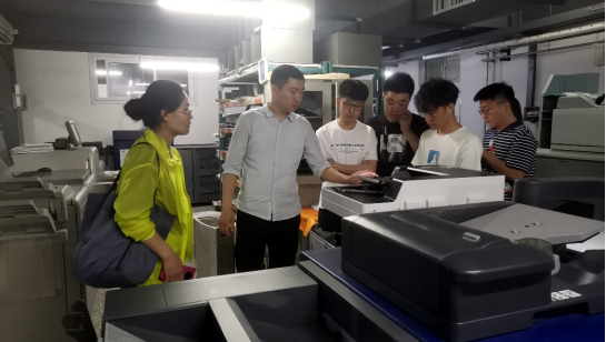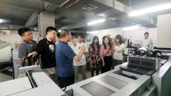 武敏老师带领2020届研究生赴承方开展印刷实践。承方负责人方杰经理结合印刷工艺、材质、流程等,向同学们逐一介绍了数码印刷及UV印刷技术等。通过参观各类机电一体自动化产品、数控设备、工艺品、打印设备和装订设备,同学们了解到印前和印后的延续,并学习到印刷新技术、不同种类的印刷材质以及工艺。参观过程中,方经理结合公司的陈列品,向同学们介绍了各类设备的功能和各自的特点、制作成本以及适用方向。通过参观,学生们对当今印刷业前沿的发展现状有一定的了解,也拓展了设计作品结合物料表现环节的知识,为设计制作提供了必要的知识补给。