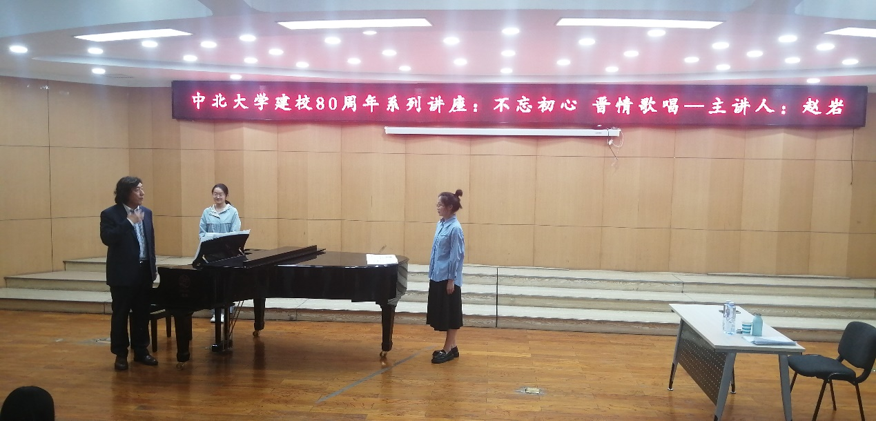 建校八十周年系列学术讲座《不忘初心晋情歌唱》,由低男中音歌唱家赵岩先生主讲。