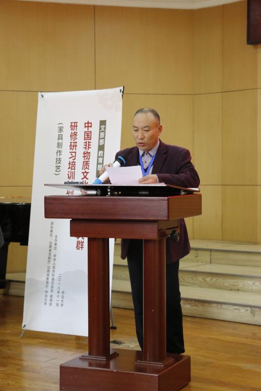 11月16日,由国家文化和旅游部、教育部主办,山西省文化和旅游厅、教育厅及我校承办的“中国非物质文化遗产传承人群研修研习培训计划·家具制作技艺”研培班开班仪式在偷拍av