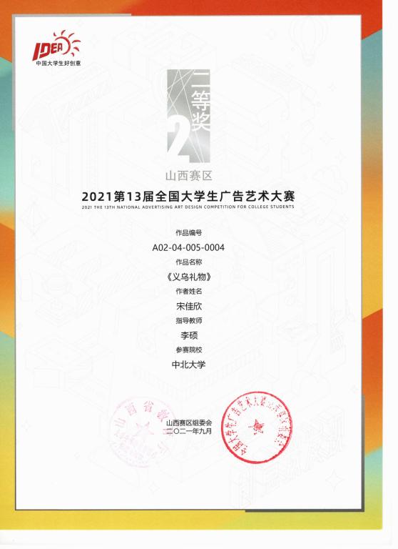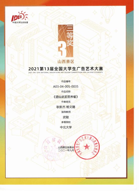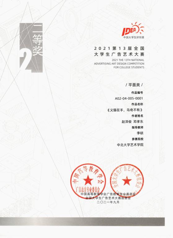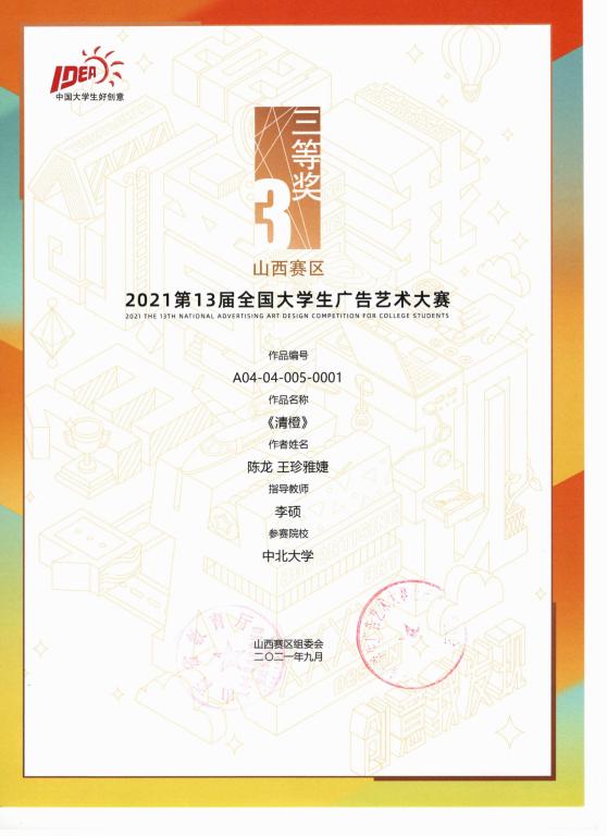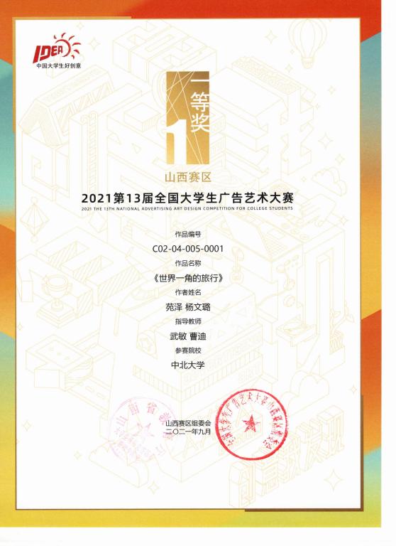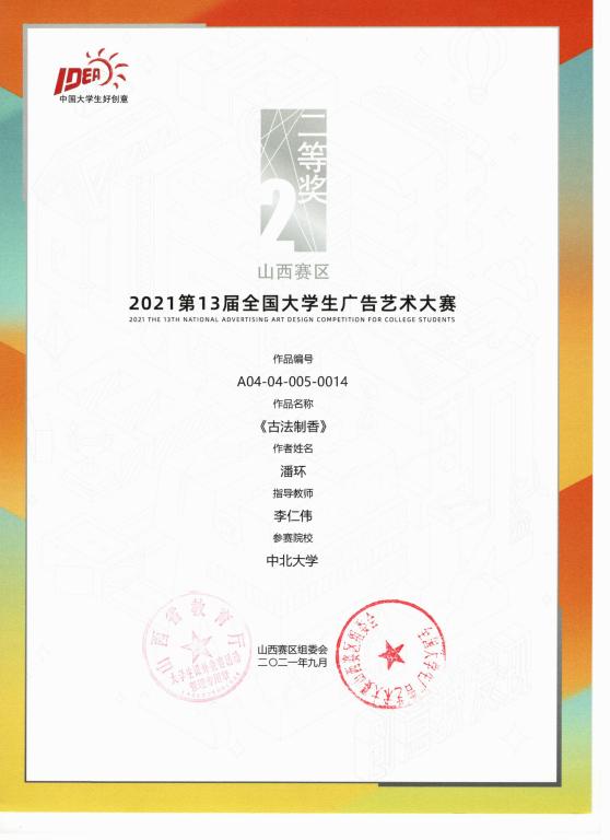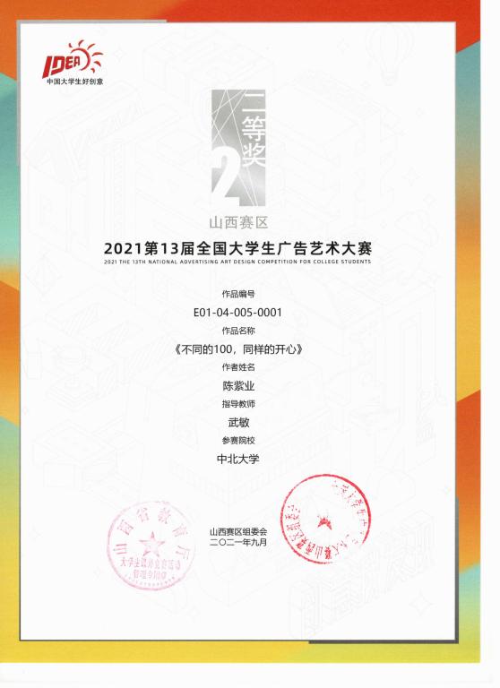第十三届全国大学生广告艺术大赛自今年3月至6月,历经严格的赛制筛选,我校偷拍av 积极参与,取得了优异的成绩。我校在今年6月组织校级评审后,报送省赛作品共计119组,其中平面类91组,影视类3件,微电影2件,短视频1件,动画类2件,互动类3件,广播类6件,策划案类11件。经过省赛的严格评选,共有25组作品获奖,省赛获一等奖2项,二等奖3项,三等奖4项,优秀奖16项。选送国赛环节作品中,获二等奖1项,优秀奖1项,实现了国赛等级奖的突破。以下为部分获奖证书,祝贺偷拍av 的学子们!