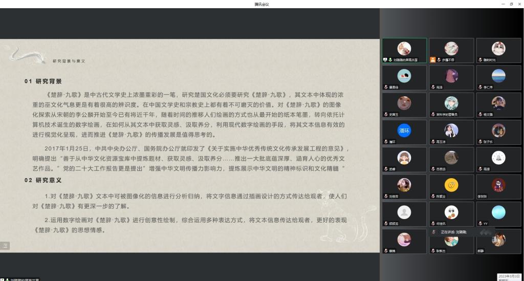 为了保证艺术硕士的培养质量,提升研究生毕业论文的研究水准,推进毕业创作的整体进程,2023年3月3日下午14:00,2020级艺术硕士(艺术设计领域)进行了毕业论文预答辩。参与答辩的学生19名,全体硕导出席进行答辩评审与指导。