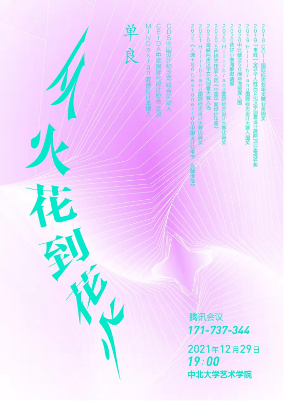 举办了线上《从火花到花火》讲座,由CDS中国设计师沙龙联合创始人、CE-DA中欧国际化设计协会会员、M-NDesing麦德设计主理人单良老师主讲。