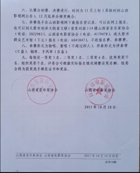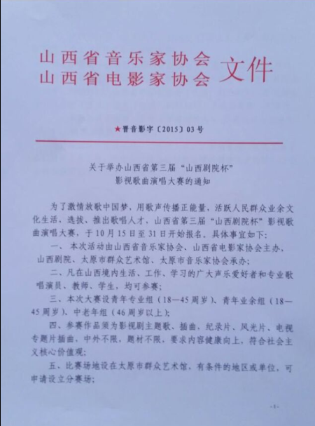 山西省第三届“山西剧院杯”影视歌曲演唱大赛的通知