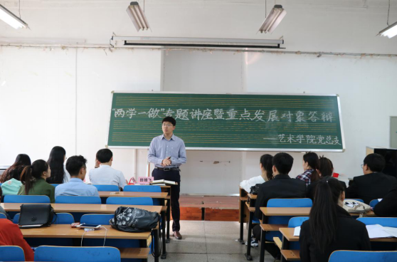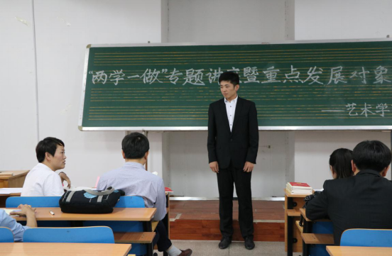 学生党支部召开了“‘两学一做’专题讲座暨重点发展对象答辩”大会。出席本次会议的有院党总支副书记田维飞老师、团委书记杜鹃老师、学生科科长夏志丽老师、辅导员高婷婷老师,以及学生党支部全体党员及重点发展对象。