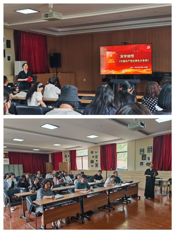 党委书记郭云霞同志以“深学细悟《中国共产党纪律处分条例》”为题开展党纪学习教育专题党课,学院领导班子及全院教工党员参加了学习。