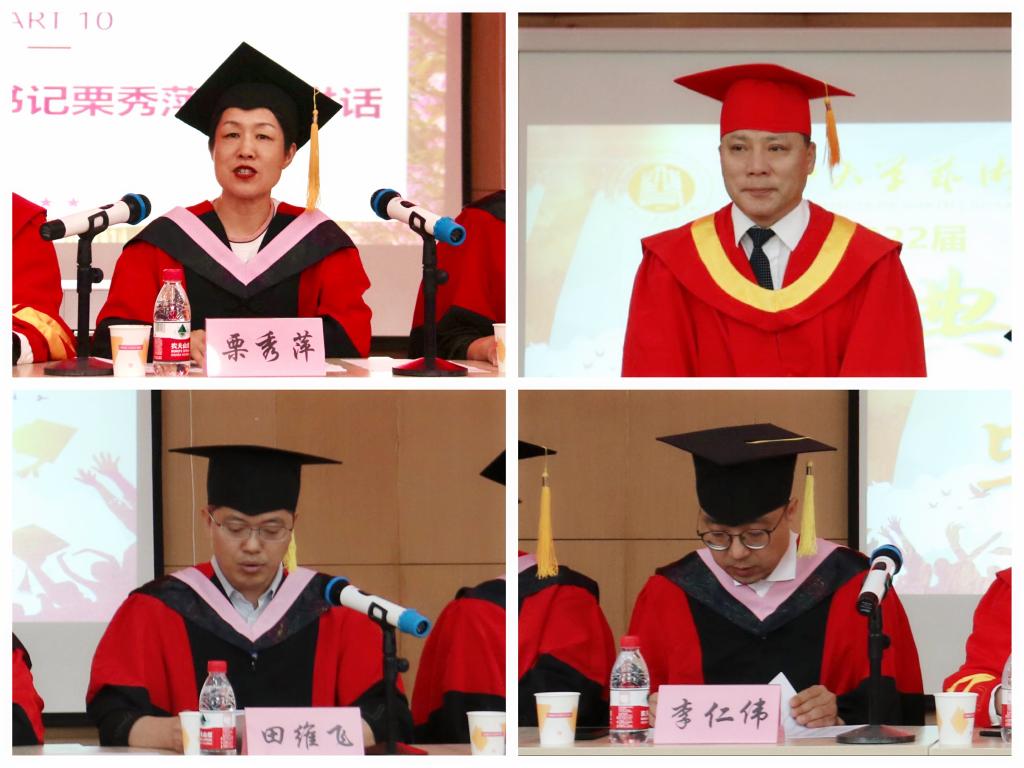 最后,栗书记动情的和毕业生们说道,大家一定要铭记红色传统,赓续红色血脉。她强调要“牢记党的教诲,立志民族复兴,不负韶华,不负时代,不负人民,在青春的赛道上奋力奔跑,争取跑出当代青年的最好成绩。”用青春承载担当,向未来书写华章!希望同学们把个人的理想追求融入党和国家事业之中,坚守人民立场、坚持守正创新,堂堂正正做人,明明白白做事。在乐观豁达中热爱生命、延展生命,始终保有描绘梦想的勇气与实现梦想的决心,祝福同学们在未来都能成就最好的自己!