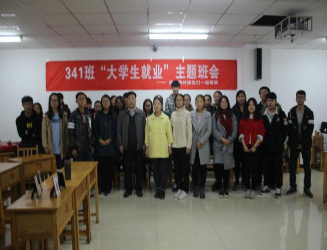 视觉传达341班在其专教16502教室组织了一场名为“大学生就业--迷茫的时候我们一起探索”的主题班会。主讲人为贺宏奎老师。