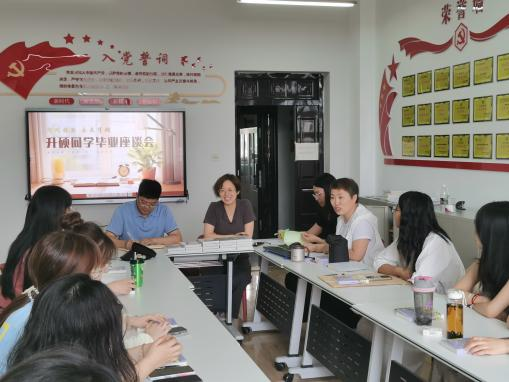 会上,夏老师汇报了学院近些年的研究生录取数据,分析了艺术学专业历年国内升学、国外留学情况。同学们结合自身经历依次进行了经验分享,尤其是在专业选择、英语学习和考研复习的方法都进行了详细的交流。