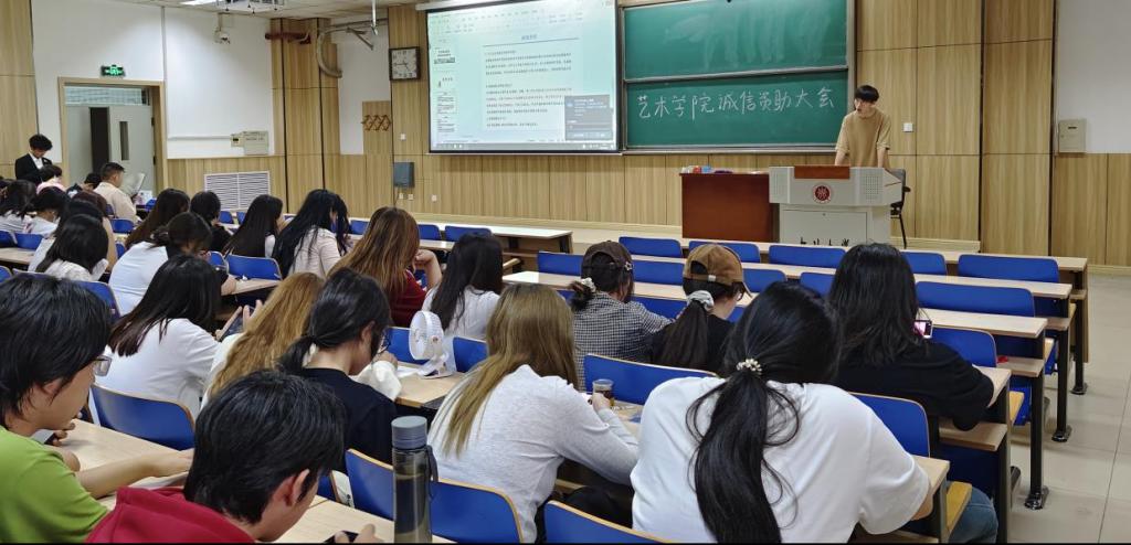 学生科副科长吕超老师提出当代大学生应强化诚信意识,珍惜国家、学校给予的各项帮扶政策,努力学习。倡导当代大学生应增强诚信意识和金融安全防范意识,积极引导学生勤俭节约、理性消费、自立自强、努力奋斗。