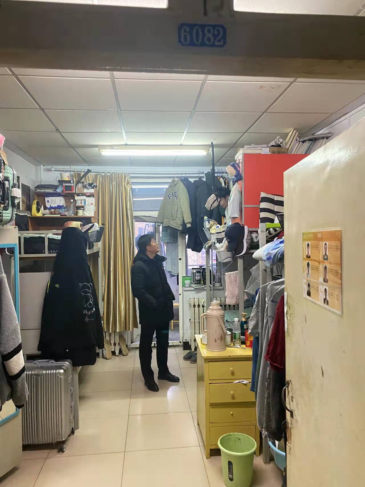 全体学生宿舍,检查了各宿舍违禁电器使用情况、易燃易爆物品存放、垃圾卫生处理、闲置物品摆放、宿舍环境等情况。在检查的过程中,老师们耐心细致地向同学们讲解消防安全知识,对存在的问题现场提出整改意见,要求同学们要增强安全防范意识,注意防火防盗,关好宿舍门窗,禁止私拉乱接电线,禁止使用大功率电器,自觉维护宿舍安全。各宿舍整体情况较好,但有个别宿舍存在一定问题,主要表现在:地面不洁、桌面杂乱、书桌混乱、床上杂乱等。老师们对这些进行了具体指导并提出解决措施,同时提示同学们做好疫情防控措施,如果发现自己或者室友出现发热、干咳等不适症状要及时到医院就诊。平时保持宿舍环境干净整洁,按时通风消毒,垃圾日产日清。