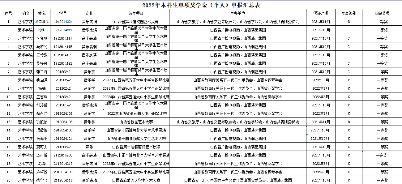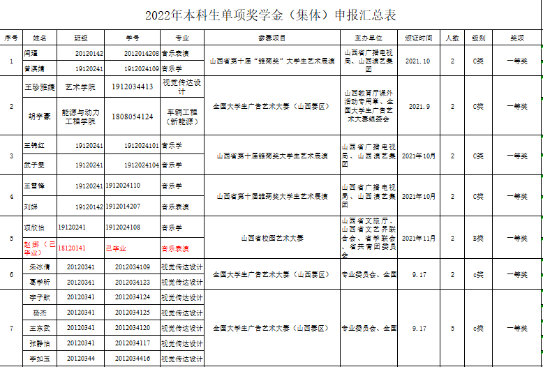 大学生奖学金评定实施细则》(校学字[2020]第11号)有关规定已评审结束。经个人申请——班级审核——学院审查,获得个人创新创业实践和竞赛奖学金名单如下。现将名单公示在管网及文澜苑公示栏内,公示期3天,从2022年10月7日——9日。