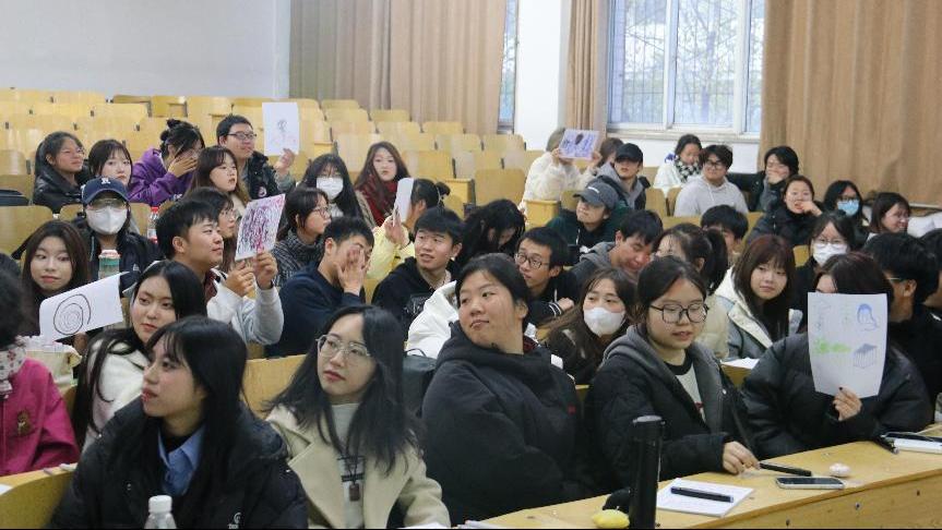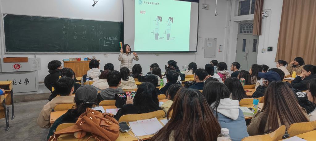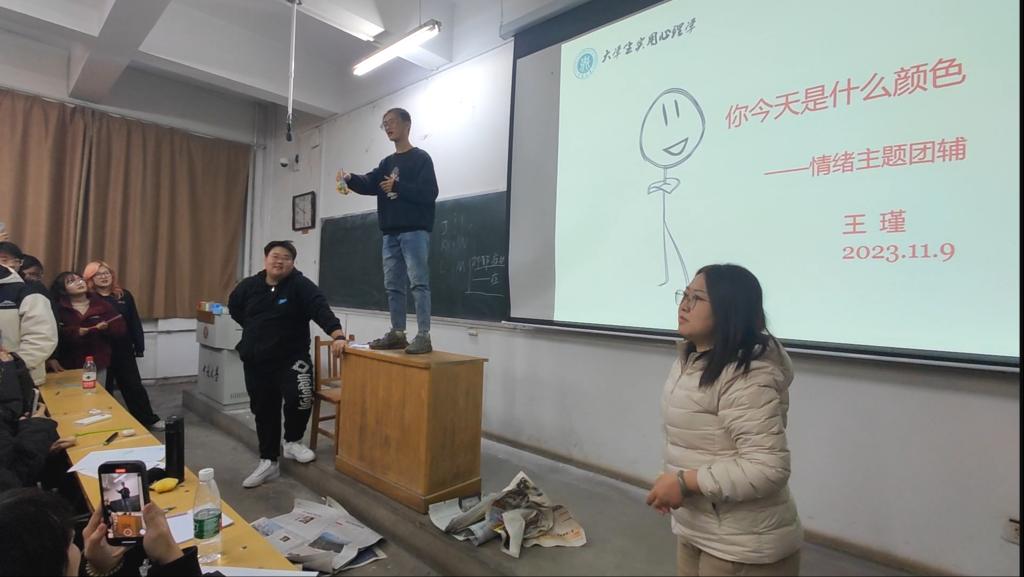 跟随王老师的引导,思考你今天是什么颜色?活动进入了第一轮热身游戏环境“抓手指”以此来活跃现场氛围。接下来进入第二个环节“情绪觉察”,情绪觉察是指我们对自己和他人情绪的感知和认知,包括愤怒、快乐、悲伤、焦虑等。王老师邀请了三名同学上台展示了四个动作,其他同学观察他们的面部表情和肢体动作,由四位同学分别扮演指责、讨好、超理智、打岔四种日常交流中都会出现的人物角色,以演戏的形式表现出四种人物的特点。通过情绪觉察,我们可以更好地了解自己和他人的情感状态,及时发现并处理情绪问题。