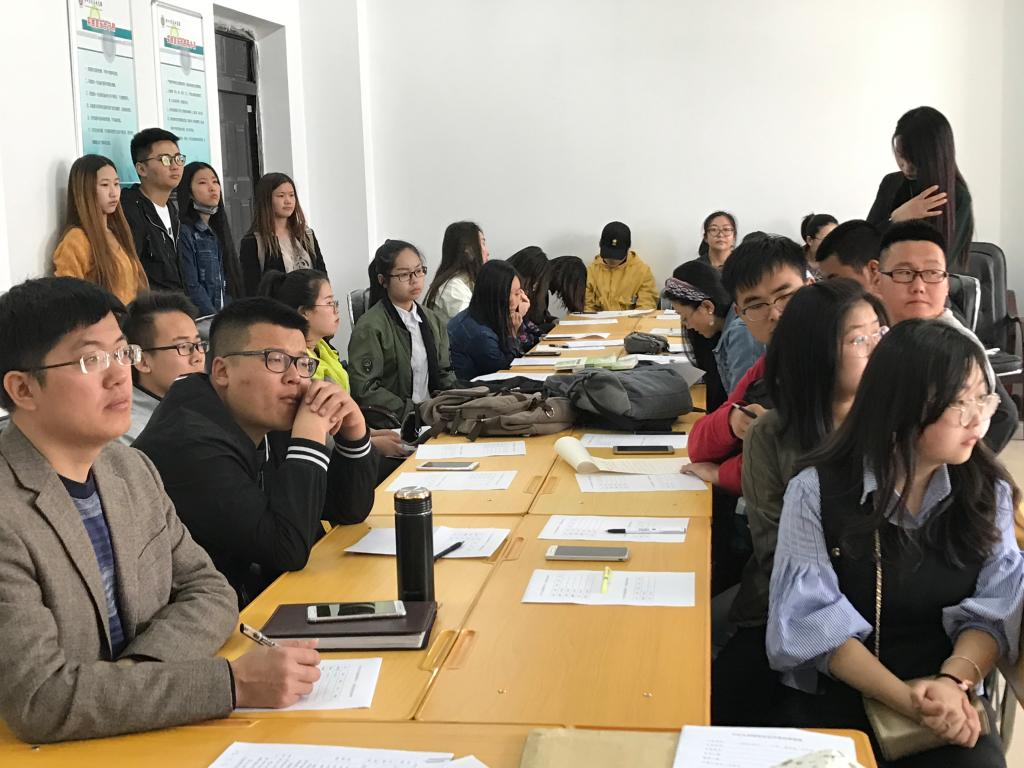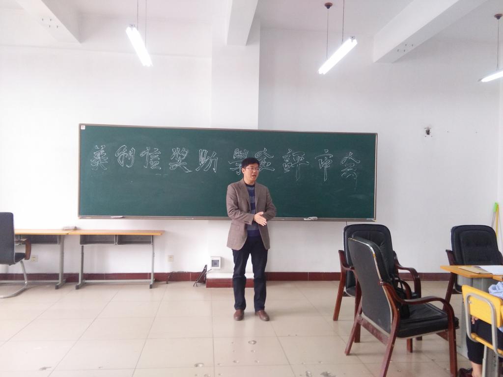 美利信奖助学金评选公开评审会。出席本次会议的有学生工作组院党总支副书记田维飞老师、院团委书记杜鹃老师、院辅导员付玉老师和各年级学生代表。经过前期的个人申报和学院初审,共有6名候选人入围最终答辩环节。评审会由辅导员付玉老师主持。