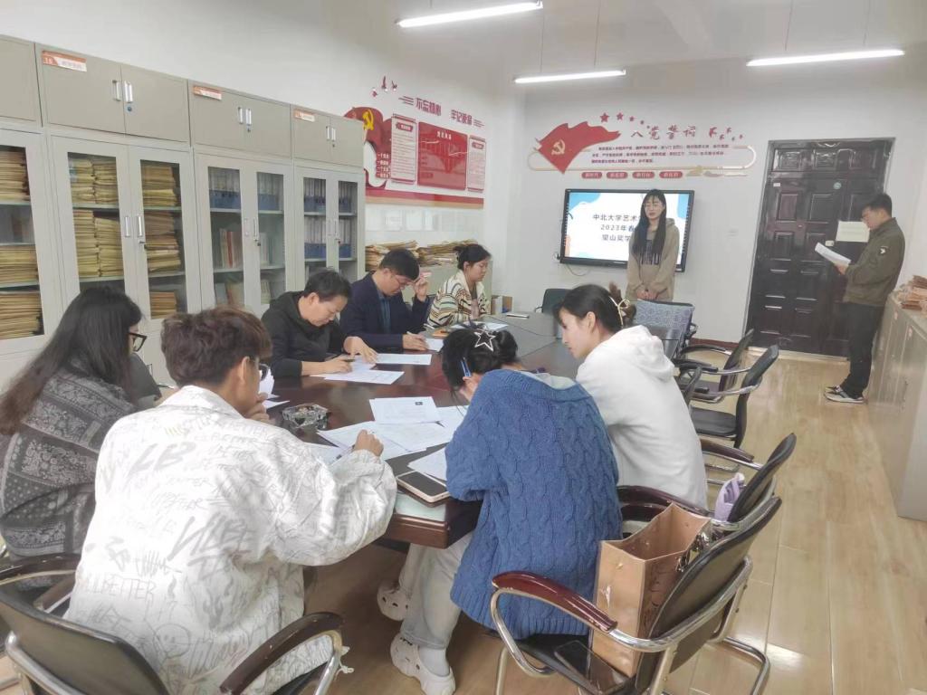 2023年“望山”奖学金评审会在9号楼5层519室召开,参加会议的是学生工作组党委副书记田维飞,学生科科长夏志丽等。