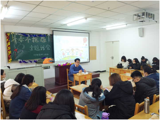 2016年12月6日16120241,242班全体学生和班主任王江萍老师在16号楼与校团委李旭鹏老师一起从《不抱怨的世界》一书出发探讨“青春是,不抱怨”的奥秘。