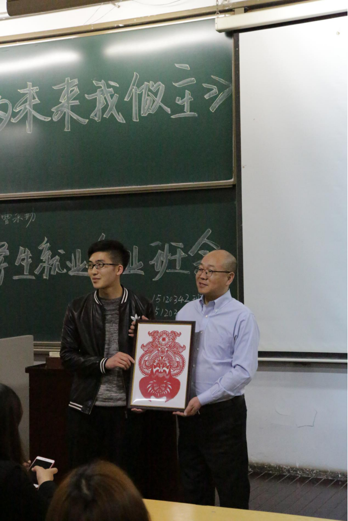本次班会特别邀请到山西国利天能科技有限公司曹永勤总经理为大家畅谈最为关注的就业创业问题。首先,曹总经理为大家概述了自己从上大学到创业的经历,由此提出了作为学生的主要任务是学习,只有学好专业技能才能将来在社会上立足,除了安排好学习,还应该多参加一些社团活动来开拓视野,做一些有意义的事情为将来步入社会做好铺垫。随后他又根据自身对社交关系的利用提醒同学们,在平常的学习工作中,要广交朋友,扩大自己的社交圈子,丰富自己的社会阅历,提高自身的工作能力和社交能力为将来就业创业打好基础。接着曹先生又在生活情感方面给大家提出了一些中肯的建议。最后,同学们向他提出了一系列关于就业创业与学习方面的问题,曹先生都给予了很好的建议和意见。曹先生诚恳的话语赢得了同学们一阵又一阵热烈的掌声。