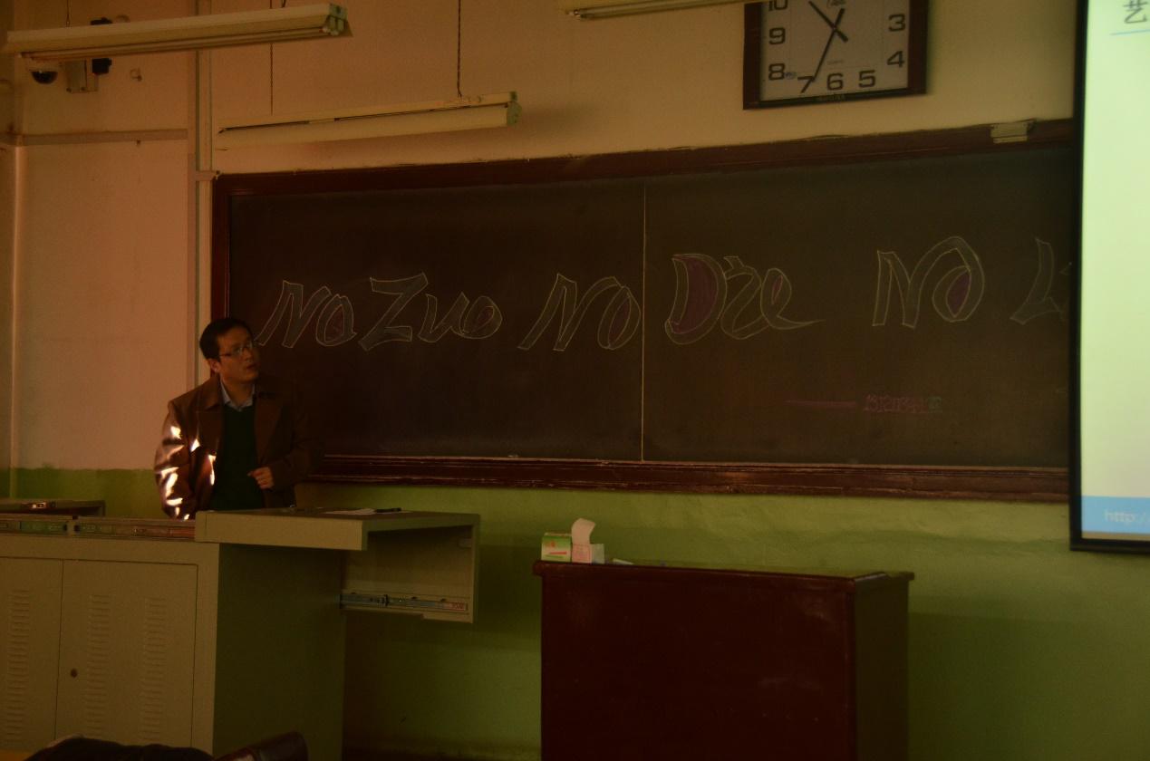 一号楼01203教室13120341班级举行了以《No ZUO No Die No Life》为主题的主题班会,此次主题班会的主讲人为优逸客软件培训赵老师以及四院胡宝鑫同学