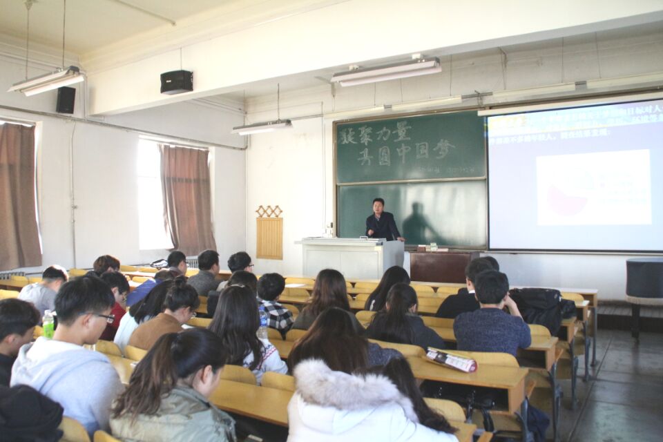 首先主持人宣布此次主题班会正式开始,之后在全体同学的热烈欢迎下,曹书记走上讲台开始了精彩的演讲。