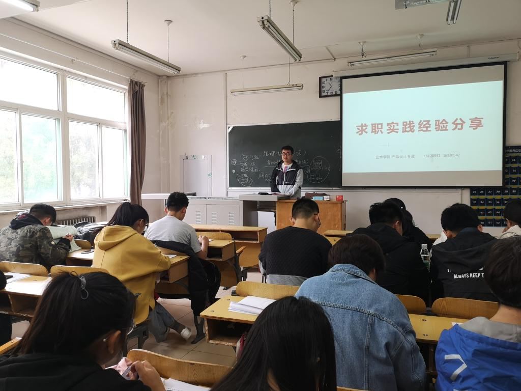 2019年10月14日,在10号教学楼209教室,偷拍av 产品设计专业2016级毕业生开展了“求职实践经验分享”活动,此次经验分享的两名同学是来自16120542班的李佳琦与李涛同学。李涛同学通过一个暑假的岗前实习,现已被网易公司录用为游戏美术设计师(3D)。李佳琦现已应聘到天津宜家东丽商城设计部实习生。他们分别就毕业作品集、简历、应聘流程、实习注意事项等与本专业同学进行了分享,他们希望通过自身的真实经历为同学们提供更多的就业参考信息。