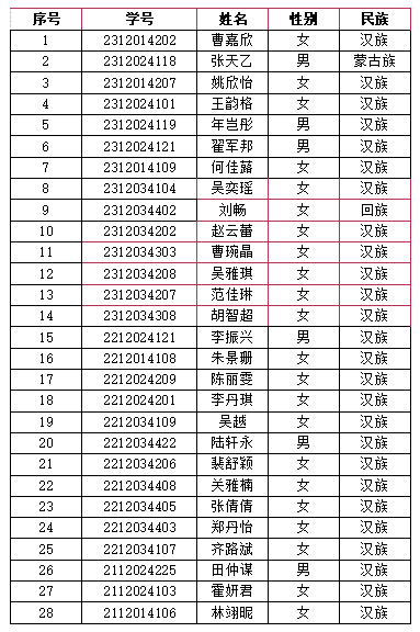 为提升团员队伍先进性,根据《中国共产主义青年团发展团员工作细则》,学院团委开展了2023年第二批入团发展工作,经过学习成绩、理论考试、志愿服务、实践展演展览等多方位综合考察,按照排名取前28位申请人,具体名单如下:
